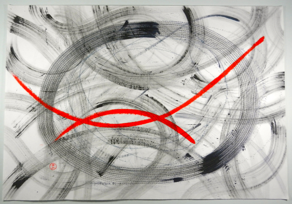 The piece above hangs in my dining/living room, it is one of my favorites. I've been pondering doing something with big swooping brush marks again but haven't primarily because of space. Now I'm the very fortunate person that has two studios, so I do have the space. Work like this takes place in Studio B, my wet studio, unfortunately I've not kept it organized and cleaned. I have been doing small stuff like my leaves and gelli prints, but something large and messy is going to require some work to get the space ready. So today I'm posting a few pictures here to make this very public so that I can show some improvement in the next few weeks.